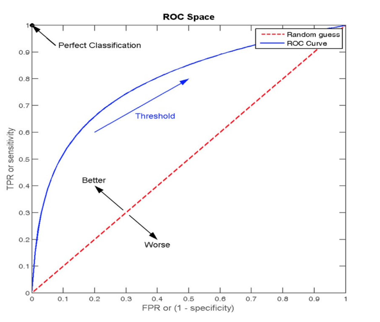 AUC的范围在[0, 1]之间,并且越接近1越好,越接近0.5属于乱猜AUC=1,完美分类器,采用这个预测模型时,不管设定什么阈值都能得出完美预测。绝大多数预测的场合,不存