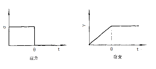 这是粘性变形的特点,其变形是永久性的,称为永久变形。如图4.2所示,当外力移除后,变形保持不变(完全不回复)。聚合物熔体发生流动,涉及到分子链之间的相对滑移,当然,这种变形是不能回复的。