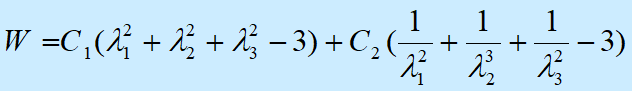 不管变形的性质也不管变形如何复杂,变形物体内任一点的W(应变储能函数)可表示为三个参数l1、l2、l3,(称为基本拉伸比)的函数: