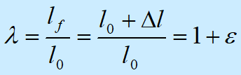 在橡胶弹性中,应变是很大的,所以必须指明e的定义式是△l/l0还是△l/lf,实际上这两种表示法都可用,也有用别的方法表示应变的。在非线性弹性中,常常使用拉伸比l来表示拉伸试验中的变形