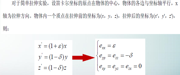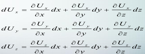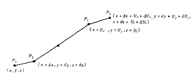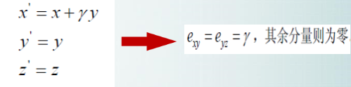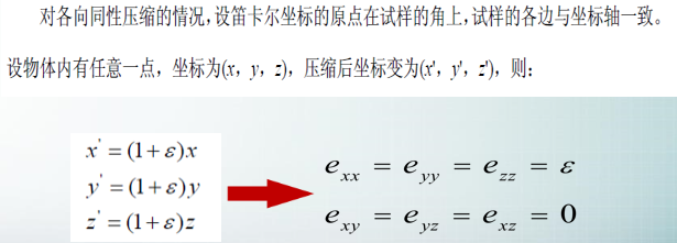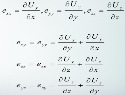六个应变分量的上述定义叫工程应变,下标相同的分量是伸长或压缩应变分量,下标不同的分量是切应变分量。对任意的应变,可以用上述六个应变分量来描述: