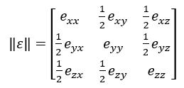 称为应变张量,张量表示法中的切应变分量定义为工程应变的1/2