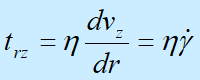 可见,如果层流流动是稳定的,剪切应力是r的线性函数,如果流体是牛顿流体,则剪切应力正比于剪切速度,即