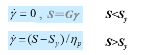 式中,Sy为屈服应力;在S<Sy时,宾汉性材料表现为线性弹性律,只发生变形g,服从虎克定律。当S>Sy时它变为液体,发生牛顿流动,此时流体称为理想宾汉流体