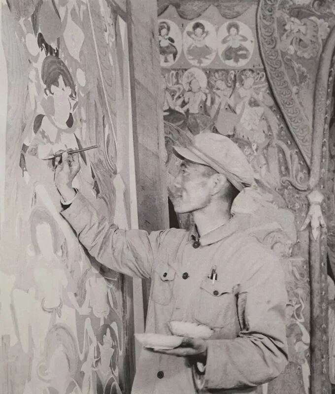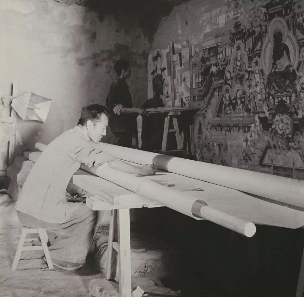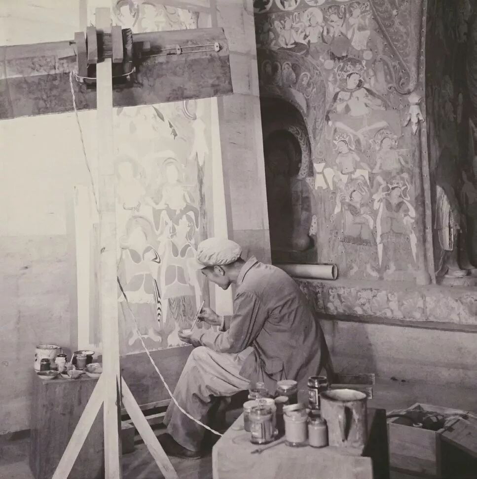 段文杰先生在莫高窟285窟临摹壁画 1952年