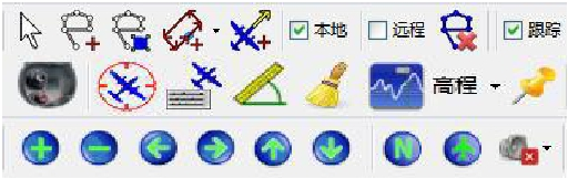 Ø  常用操作工具栏:包括 光电吊舱显示飞行器居中、显示飞行状态小标签、测距尺清除航迹、高程剖面和标记。