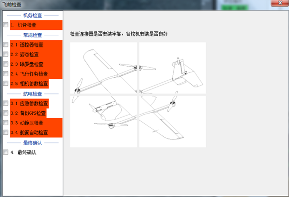 起飞前按照飞前检查事项及提示内容完成全部检查事项后,自驾仪“起飞”指令才能解锁。