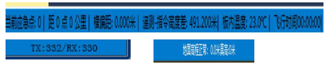 Ø  飞行状态概述:显示当前应急点、横偏距、遥测指令高度差、板内温度和飞行时间以及 数据收发信号状态。