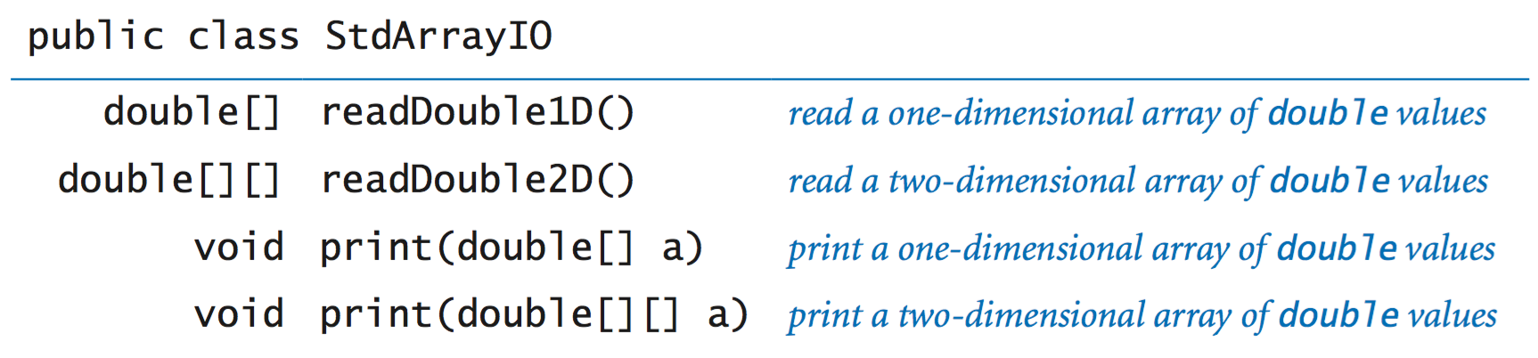 StdArrayIO.java is a library for reading arrays of primitive types from standard input and printing them to standard output.