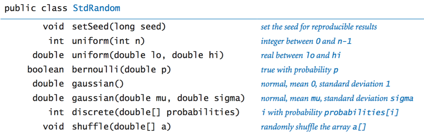 StdRandom.java is a library for generating random numbers from various distributions.