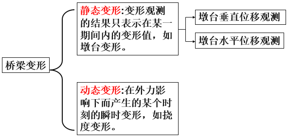 桥梁挠度观测分为桥梁的静荷载挠度观测和动荷载挠度观测。静荷载挠度观测时测定桥梁自重和构件安装误差引起的桥梁的下垂量;动荷载挠度观测是测定车辆通过时在其重量和冲量作用下桥梁产生的挠曲变形。