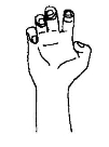 响指:无名指与小指屈握,拇指与中指、食指摩擦后,中指击打大鱼际处产生响声(图4-21) 。