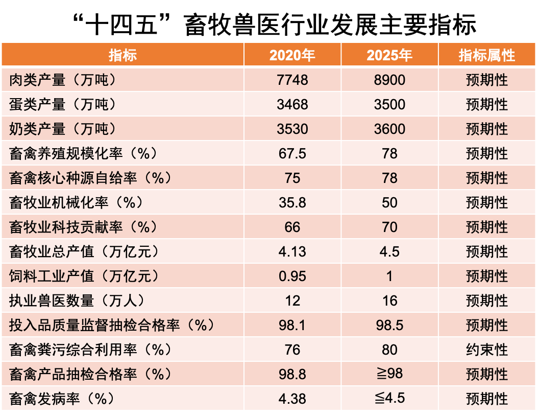 “ 十四五” 全国畜牧兽医行业发展规划: