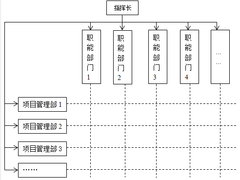 矩阵式组织是介于职能式与项目式组织结构之间的一种项目管理组织模式。矩阵式项目组织结构中, 参加项目的人员由各职能部门负责人安排, 而这些人员的工作在项目工作期间, 项目工作内容上服从项目团队的安排, 人员不独立于职能部门之外,是一种暂时的, 半松散的组织形式, 项目团队成员之间的沟通不需通过其职能部门领导, 项目经理往往直接向公司领导汇报工作。