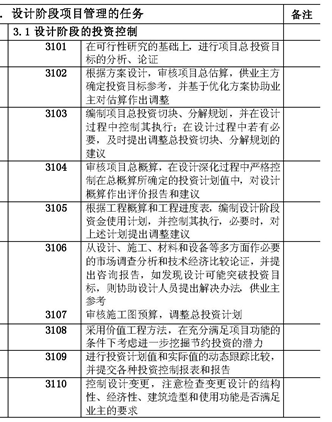 每一个建设项目都应视需要编制项目管理任务分工表,这是一个项目的组织设计文件的一部分。在编制项目管理任务分工表前,应结合项目的特点,对项目实施的各阶段的费用(投资或成本)控制、进度控制、质量控制、合同管理、信息管理和组织与协调等管理任务进行详细分解。某项目业主方的部分项目管理任务分解示例如表所示。