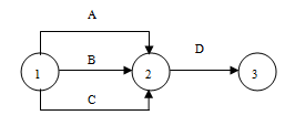 2.直接连接两个相邻节点之间的活动只能有一个,如图2。