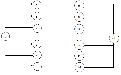 3)如果其所有紧前工作都同时作为其他工作的紧前工作,先将它们的完成节点合并后,