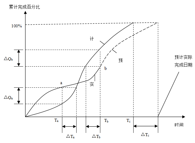 (3)项目实际完成任务量的偏差:如图4.30所示,ΔQa表示Ta时刻超额完成的任务量;ΔQb表示在Tb时刻少完成的任务量。