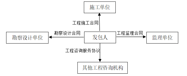 工程建设是一个极为复杂的社会生产过程,由于现代社会化大生产和专业化分工,许多单位参与到工程建设之中,而各类合同则是维系这些参与单位之间关系的纽带。建设工程合同体系包含的主要合同关系见图1。