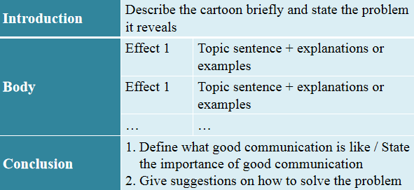 From the two texts, you have learned that the art of communication is being lost as people prefer to use email, texts and tweets to communicate. Someone uploaded a cartoon (see next page) to an online discussion forum which has generated heated discussion. You have been aware of the negative influences of digital devices on communication after learning this unit. So you are eager to share your ideas and you are going to write an opinion piece for the forum.