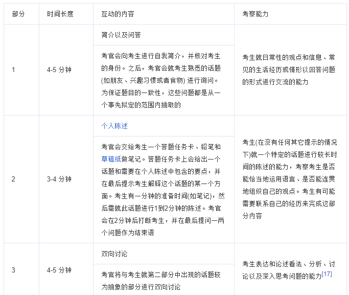 口语考试时长: 11-14分钟