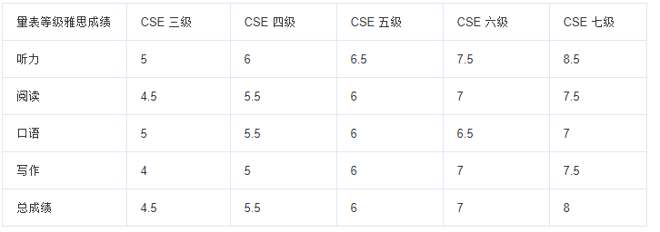 2019年1月15日,中国教育部考试中心与英国文化教育协会在京联合发布雅思、普思考试与中国英语能力等级量表对接研究结果,标志着中国英语语言能力标准与国际考试接轨,中英在教育领域的合作进入新阶段。对接结果呈现了雅思、普思考试各技能和总成绩对应中国英语能力等级量表相关等级的临界分数。如:雅思听力得5分,即达到中国英语能力等级量表四级水平;阅读得5.5分,达到五级水平;口语得6分,达到六级水平;总成绩得8分,即达到八级水平等。