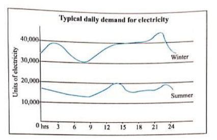 The graph below shows the demand for electricity in England during typical days in winter and summer. The pie chart shows how electricity is used in an average English home.