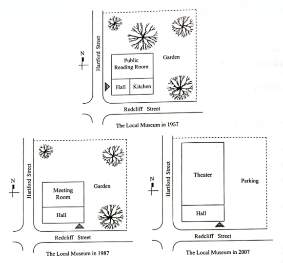 本题是典型的历史变迁题,分3个阶段介绍了该博物馆的布局变化,分别按时间顺序介绍就可以了。需要注意的是,虽然3个地图分别展示的是博物馆在1957年、1987 年和2007年的情况,但考题里并没有说明对于博物馆的各种改造就是在1987年和2007年这两年进行的,所以这篇范文里使用了较多的by ...(截至某个时间)。相应地,本文里的动词也使用了较多的过去完成时(had +过去分词)形式,表示对于博物馆的各项改造分别在1987年和2007年已经完成了。