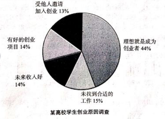 大学生兼职或在毕业前就开始创业的现象日益普及。从上述饼状图中,我们可以看到对某高校学生创业原因的调查。那些目标就是创业者的学生占44%,在五种原因中比例最大,而那些未找到合适工作的学生占15%。