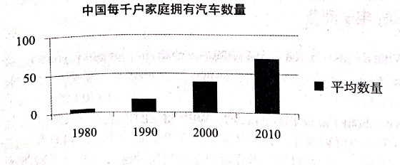 上述柱状图中的数字显示了从1980年到2010年私家车的稳步增长情况。如图所示,在1980年每一千个家庭拥有5辆私家车。在接下来的30年中,这个数字一直在平稳增长, 2000年达到40辆而到2010年每千户家庭拥有70辆私家车。