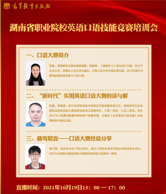 2021年10月19日,中国高等教育出版社主办湖南省职业院校英语口语技能竞赛培训会。