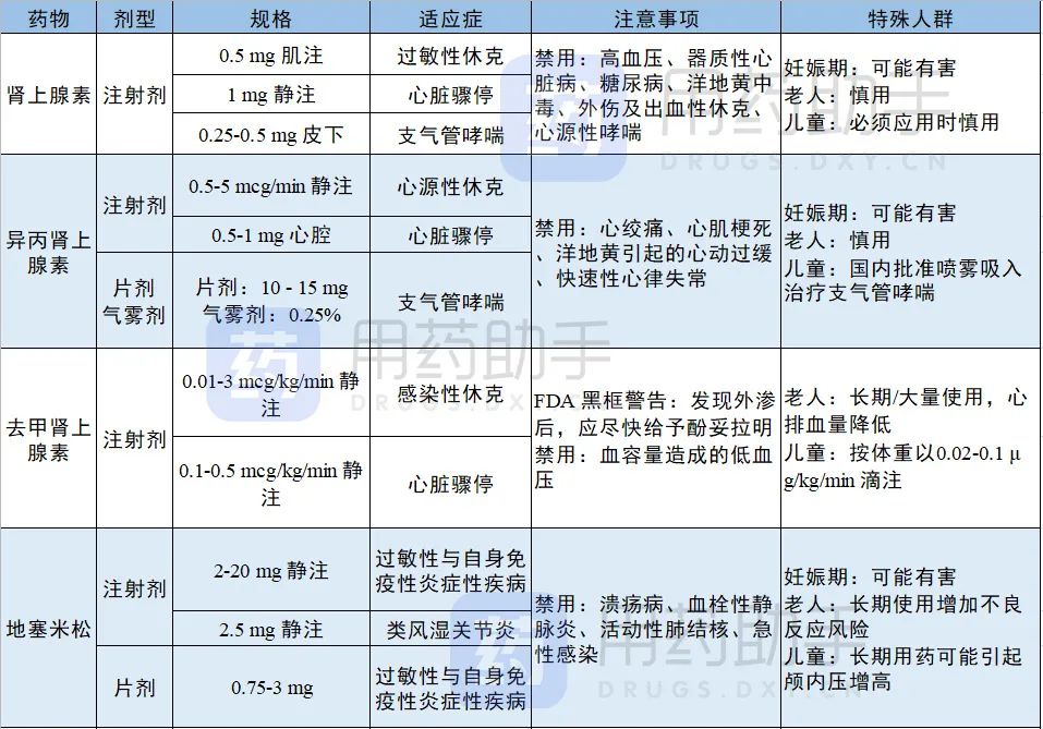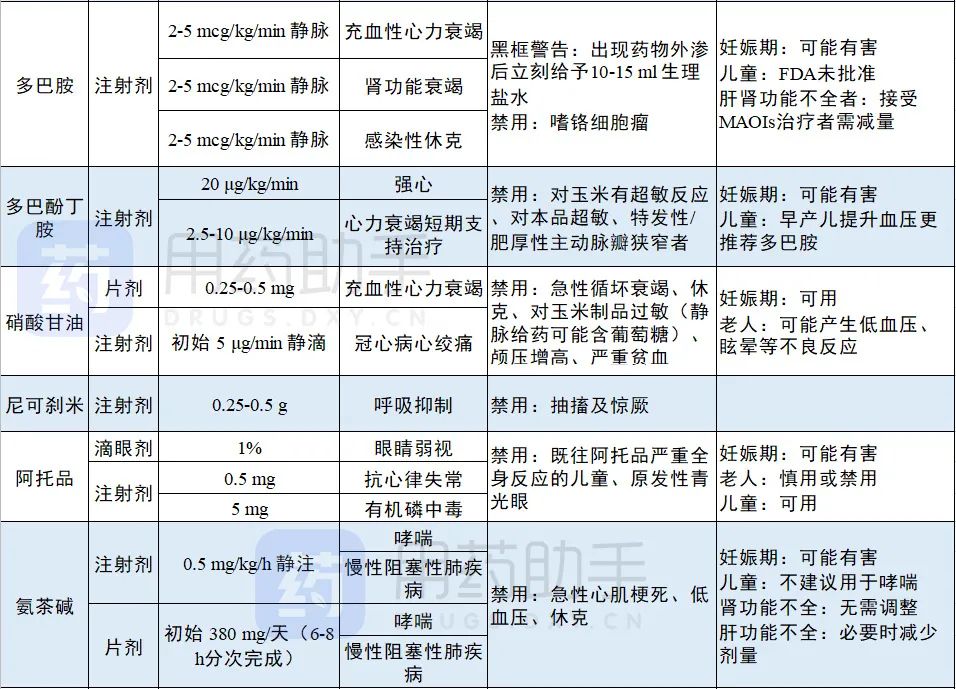 20种临床常见急救药物的用法用量、禁忌症以及特殊人群使用方案