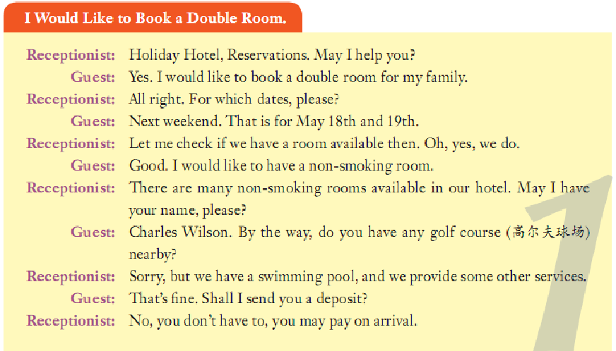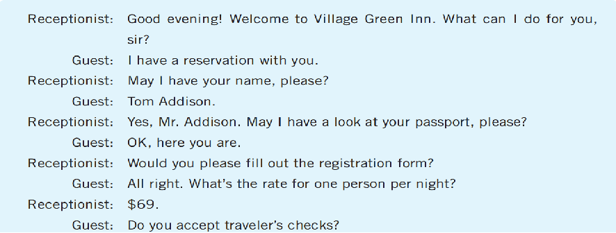 Receptionist: Welcome. Would you please show me your passport?