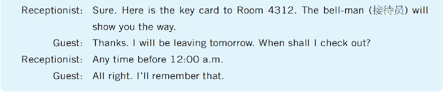 Receptionist: All right, please show me your room card.