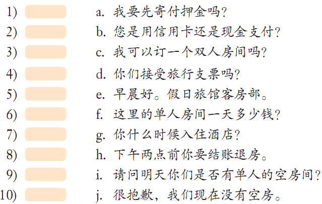 2 Listen again to the above sentences rearranged in sequence, and then match them with their Chinese translation.