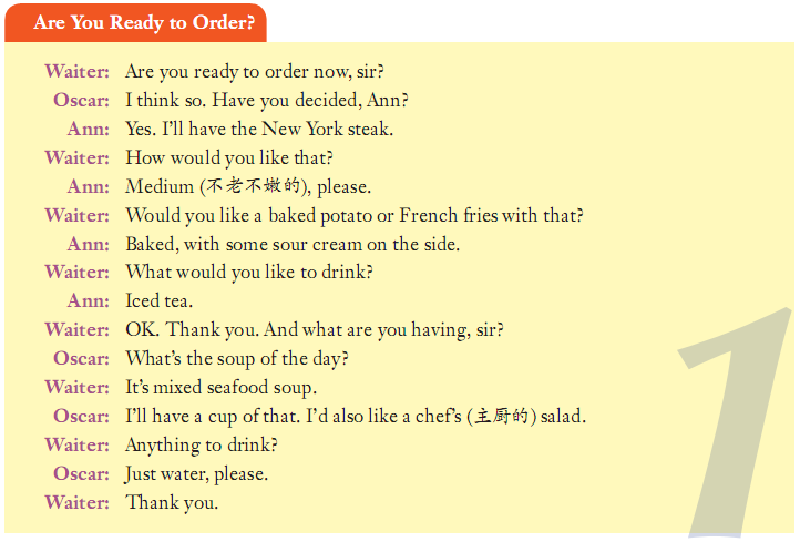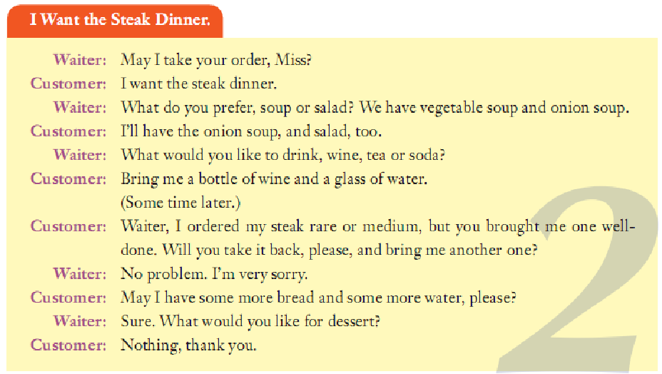 Waiter: Fine. We serve a wide range of typical Chinese food. Here's the menu.