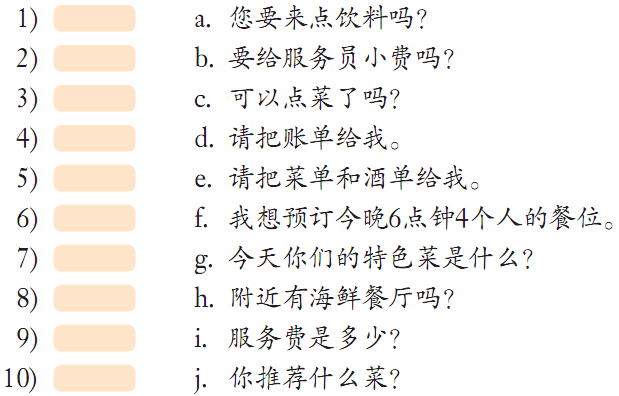 2). Listen again to the above sentences rearranged in sequence, and then match them with their Chinese translation.