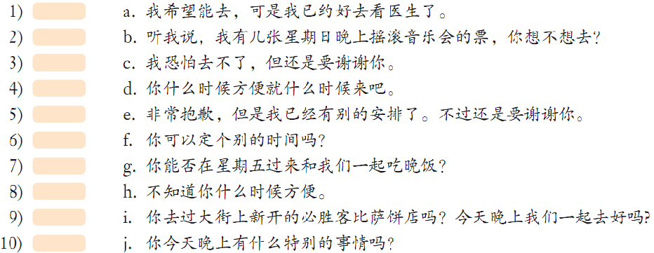 2. Listen again to the above sentences rearranged in sequence, and then match them with their Chinese translation.