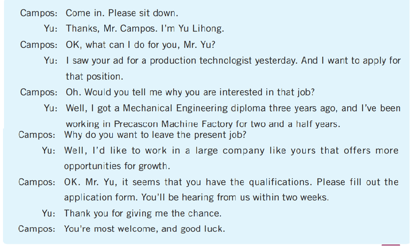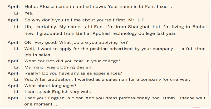 Li: Certainly. I graduated from a trade college two years ago, and I majored in accounting.