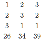 问题今译:今有上等稻 3 捆、中等稻 2 捆、下等稻 1 捆,共出 39 斗米;有上等稻 2 捆、中等稻 3 捆、下等稻 1 捆,共出 34 斗米;有上等稻 1 捆、中等稻 2 捆、下等稻 3 捆,共出 26 斗米. 问上等稻、中等稻、下等稻每捆各能出几斗米?
