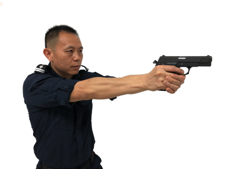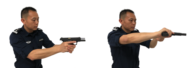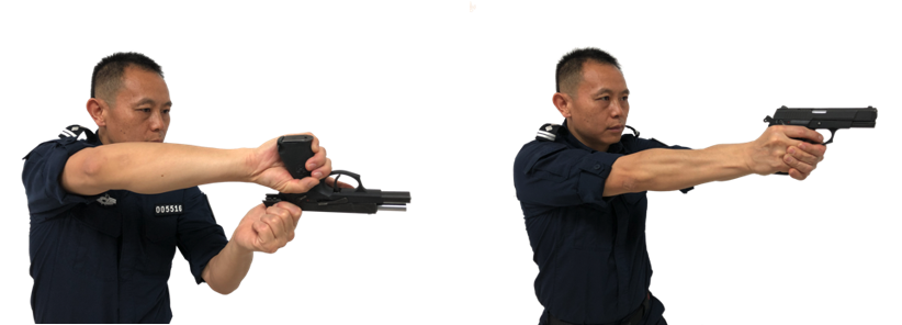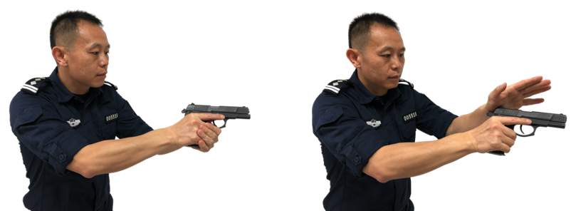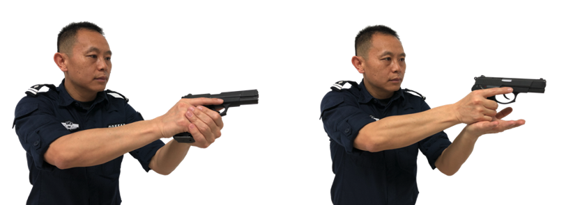 训练时必须养成正确的操作动作,如正确的握枪手法、上膛动作、射击时要锁稳握枪手腕等。
