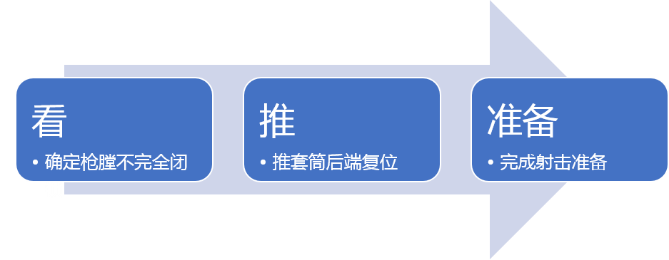 枪膛不完全闭锁类故障可通过“看-推-准备”的方法进行紧急排障。