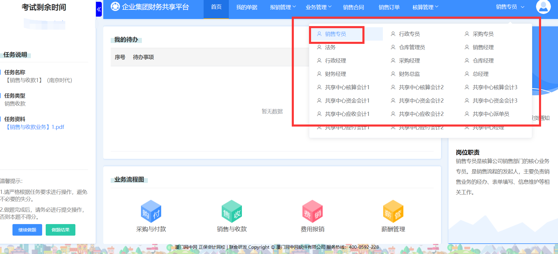 销售到收款流程实训平台