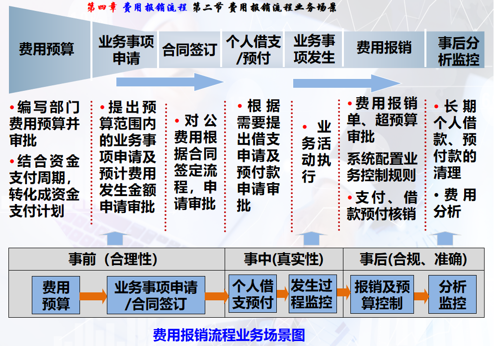 事后(费用报销、事后分析监控)。