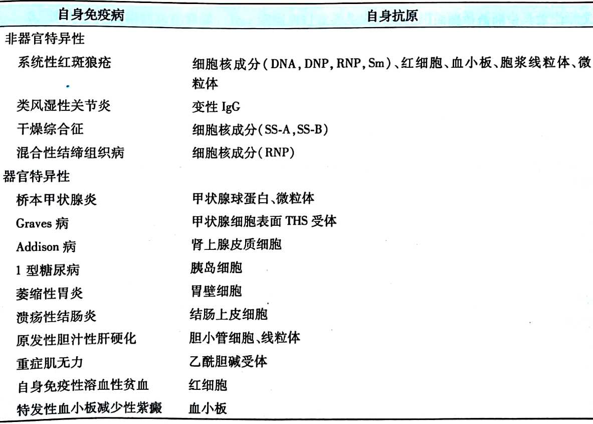 3.自身免疫性疾病:在某些原因的诱发下,自身免疫耐受被破坏,自身免疫的持续存在导致相应的自身组织细胞受损及器官功能障碍。