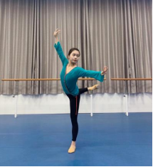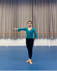 动作规格:主力腿直立,动力腿小腿弯曲由膝盖带动向上抬起,脚尖与头从两头往上要有一种无限延伸感,上身拧腰翻胸、顺风旗舞姿。(见图5)