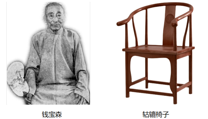 “轱辘椅子”是戏曲艺术家钱宝森总结出练习身段基本功的方法,也是初学戏曲的演员们必修的功夫。钱宝森说:它练的是腰上的劲,眼里的神,是一切舞蹈动作的基础。演员们在舞台上所使的舞蹈身段,都离不开“轱辘椅子”的劲。这门基本功练好了,用处是很大的。我学戏时候,学“云手”,打“把子”,“拉戏”才用了一年零七个月。可是“轱辘椅子”倒轱辘了整整四年,还是一天不间断的四年。可见当初对这门功课的重视啦。练这门功,要找一把老式样的大椅子,椅子的形式是类似太师椅,而不是太师椅,要两边儿没有扶手的。椅背儿要高,人坐在椅子上,椅背儿的最上部要在人的膀环儿下边儿。椅背儿不要全实的,中间仅要三分之一的实背儿,实背儿两边都要空的。这三分之一的实背儿不要板平的,要微弯的,上半截要平,下半截要往外凸出的。初步练习的时候,主要是走劲。准备姿态是人端坐在椅子上,两手五指伸开,扶在左右腿的马面(大腿跟儿的下边,磕膝盖的上边叫马面)两只脚要蹬在椅子下边儿的横撑儿上,人的腰部要与椅背儿贴紧,但要稍留一些空隙。这个空隙,仅仅能勉强塞进两个手指头去就可以啦。由腰部往上,就不要贴着椅子背儿了。