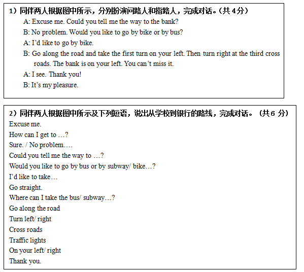 同伴两人利用上题中学校周边的地图,分别扮演问路人和指路人,完成下列问路对话。