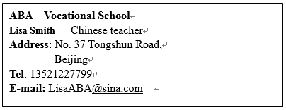 阅读下面的名片,判断根据图片所做的陈述是否正确,正确的填“T”,错误的填“F”。