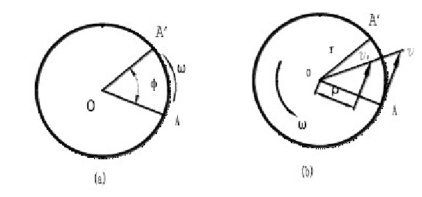 2、角速度是表示刚体转动快慢和转动方向的物理量。 设有一动点绕O点作圆周运动,经过t秒后,动点从A点转到A'点(如下图所示),即绕中心转过φ角度。